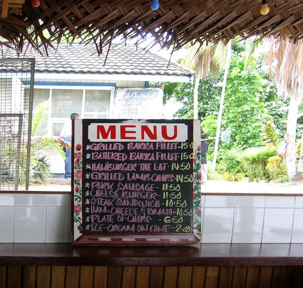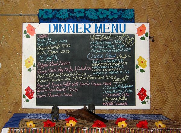 Meals in general were good with reasonable quantities and a decent selection. Interestingly almost every fish dish was apparently barramundi…..Please note that the prices shown on the menus are in the PNG Kina - not dollars.