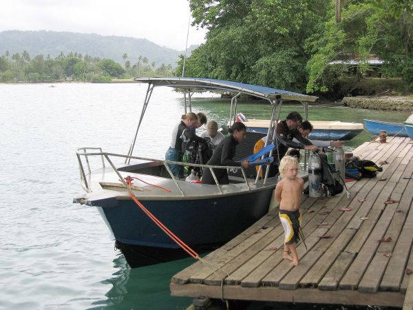 They run several boats (including a new live-a-board that’s just starting up) and have a good team of locally recruited dive masters who obviously know the area well. All dives were two tank dives leaving around 8:45 am with a decent surface interval (tea/coffee biscuits supplied) followed by a second dive and back for lunch. A second single or double tank dive was available in the afternoon for those wanting to go out. Night dives available on request. Most of our dives were in fitted out aluminium type tinnies with tank storage racks and shade cloth; carrying around 8 divers. Travel times rarely exceeded 30 minutes and there were no real comfort problems.